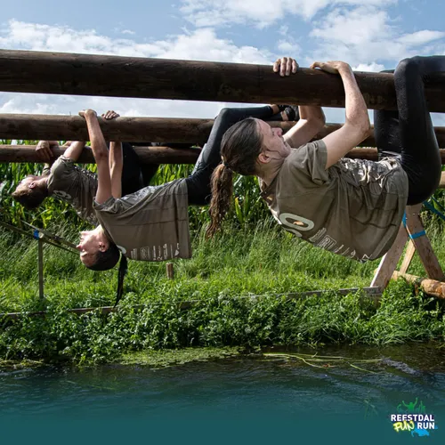 Een uitdagende combinatie van een survivalrun en obstaclerun slingerde op deze manier door de prachtige natuur van het Reestdal. Voor deze speciale jubileumeditie was wethouder Werner ten Kate aanwezig om het officiële startsein te geven.