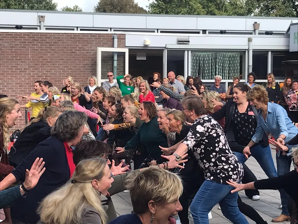 Wolderwijsbestuurder Martijn Mulder was de dag begonnen met een presentatie over het Koersplan. Dat plan kwam mede tot stand aan de hand van een aantal gehouden Wolderwijscafés. Het motto van Wolderwijs luidt ‘Wolderwijs ontwikkelt…’. Dat betekent niet alleen dat de medewerkers de kinderen verder helpen bij hun ontwikkeling, maar ook dat zij werken aan hun eigen ontwikkeling. Ieder jaar volgen zij met hun eigen team scholing en kunnen zij gebruik maken van het nascholingsaanbod via de Wolderwijsacademie. Jaarlijks is er een Wolderwijsdag voor alle medewerkers gewijd aan één thema. Dit jaar was dat thema ‘verbinding’, één van de kernwaarden van Wolderwijs, evenals ambitie, kwaliteit en ontwikkelingsgericht.