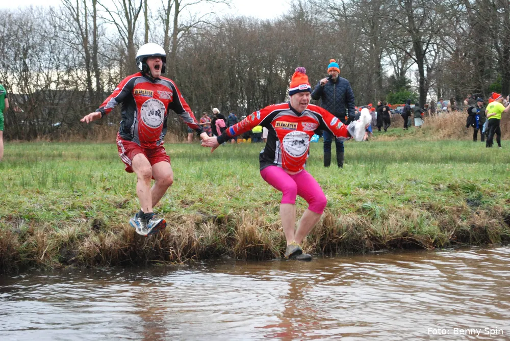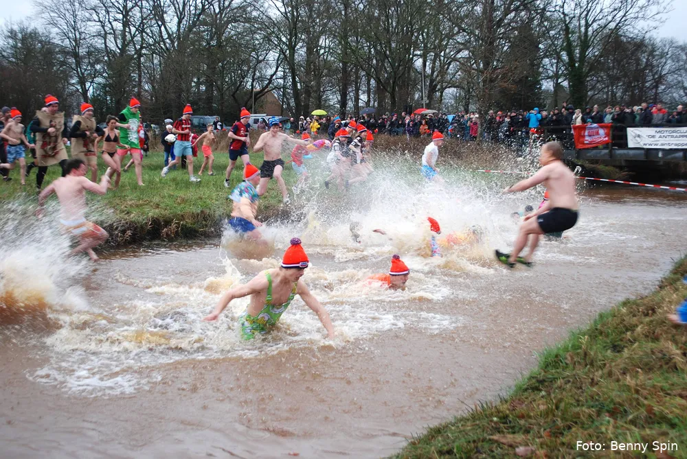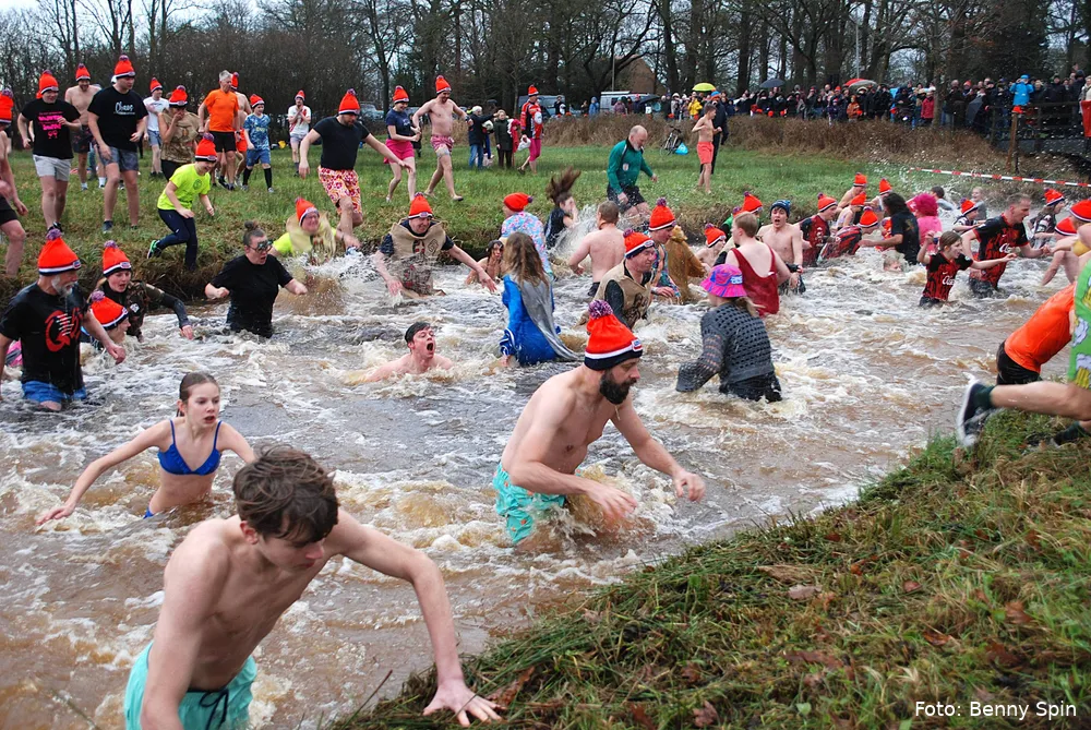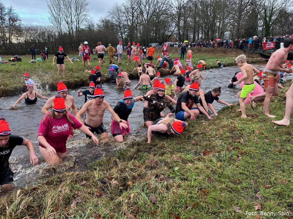 De Wijk - Her en der in het land werden nieuwsjaarsduiken afgelast, uiteraard niet in de Wijk. Klokslag 14.00 uur op nieuwjaarsdag 2026 vond de 22e editie van de Unox Nieuwjaarsduik plaats, georganiseerd door motorclub De Antrappers uit De Wijk.