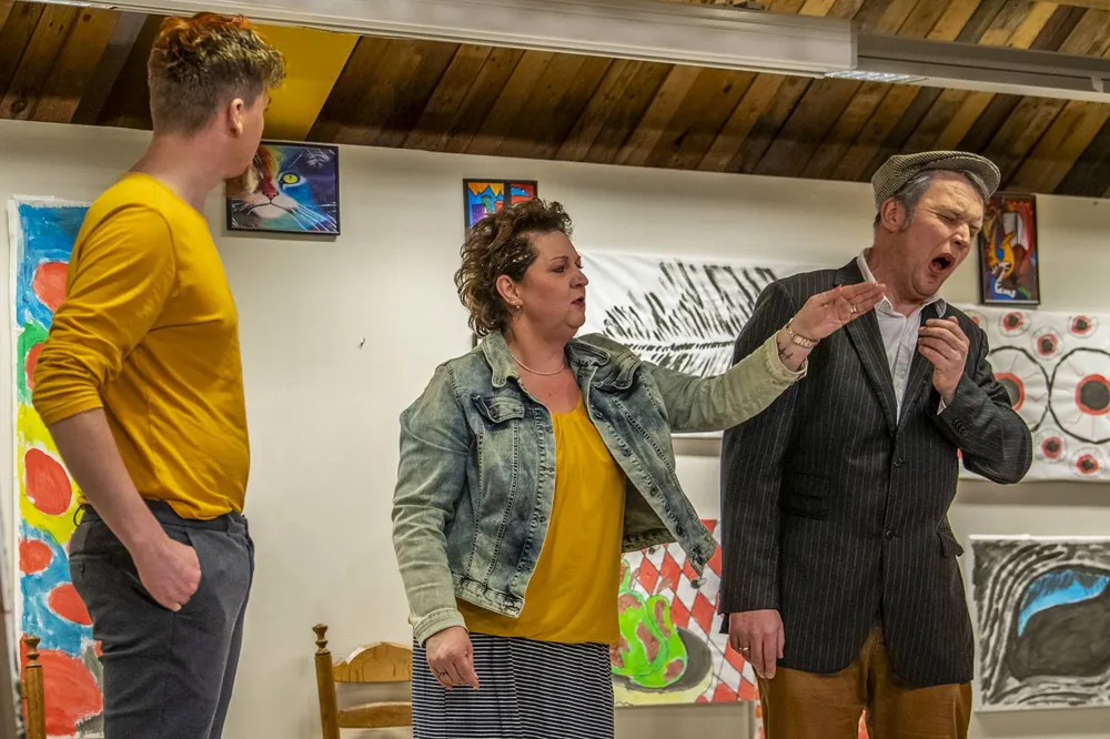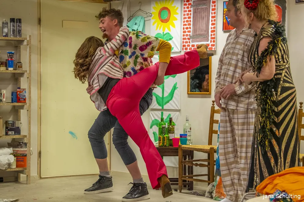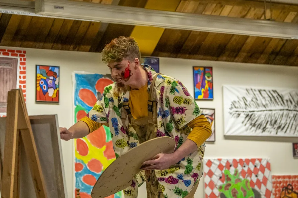 In buitencentrum De Poort werd een schilderachtig decor gebouwd en legden de spelers een even schilderachtig spel op de planken. Een schildersatelier was de centrale plek voor een absurde, klucht vol effectvolle vergissingen. Reuring op de bühne met een kunstschilder in de hoofdrol. Of was het toch de bierbrouwer die voor de nodige omzet zorgde? Daar ging het stuk dus over.