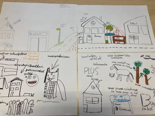 Op verschillende manieren werden de kinderen aan het werk gezet. Ze tekenden de schoolpleinen waar zij het liefst op zouden spelen of gingen vraaggesprekken voeren met medewerkers. In de tussentijd konden de aanwezige ouders kwijt wat zij graag in De Wolden zouden willen zien als het om opgroeien gaat.