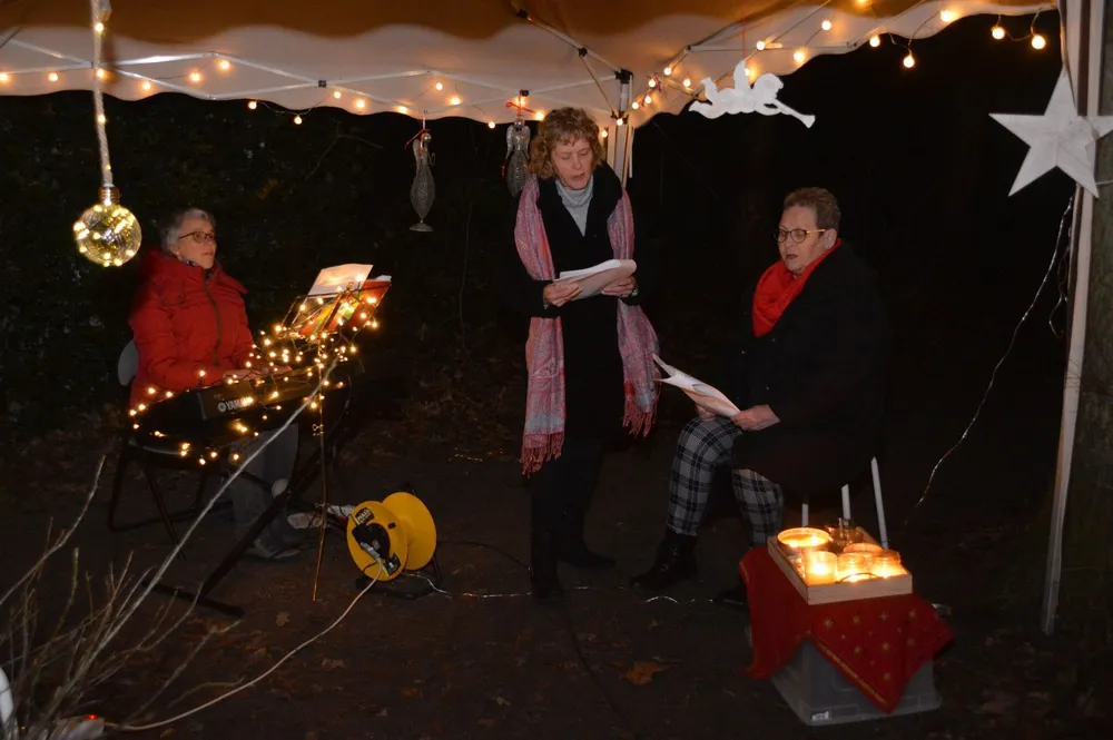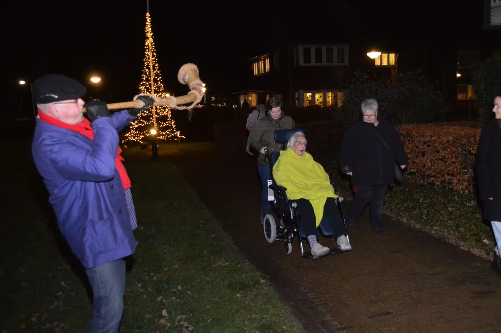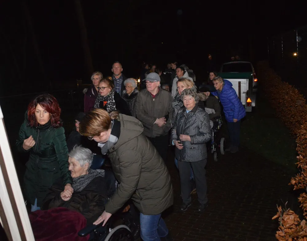 ‘Andere jaren hielden we een kerstmaaltijd met wat liedjes erbij, maar we hadden nu eens wat anders bedeacht. We zijn anderhalve maand geleden gestart met de voorbereidingen’, vertelt Riëtte Leffers van het Tonckenshuys. Hier geen kerstwandeling van 5 of 10 kilometer, maar eentje waarde beleving centraal stond en waar de bewoners van het Tonckenshuys ook met hun rollator of rolstoel rond konden gaan. Het rondje om het huis heen kende verrassend veel vertier en werd door de bewoners en hun meelopende familieleden en/of vrienden hogelijk gewaardeerd.