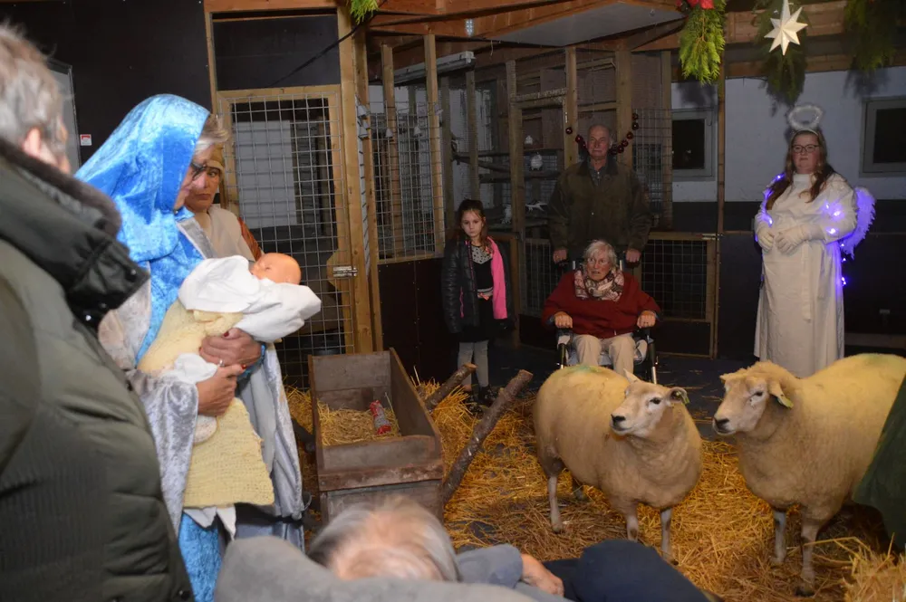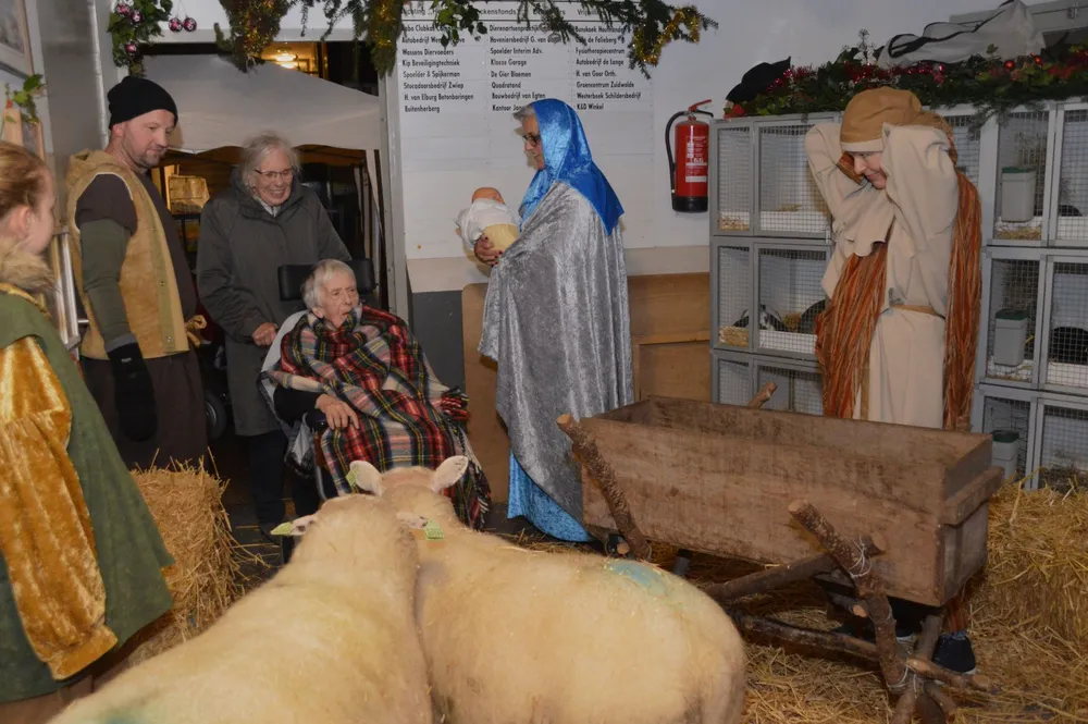 De ronde werd opgeluisterd door de midwinterhoornmusici van De Ekelbloazers, mannen die hele drukke weken beleven en her en der hun opwachting maken. Bij het dierenparkje was het hok als stal ingericht. Levend zelfs, want het hele gezelschap dat de hoofdrol speelt bij de geboorte van Christus in Bethlehem, werd hier mooi uitgebeeld door een groepje medewerkers, compleet met schapen. De bewoners konden allemaal een kijkje nemen in de stal, maar dat leidde wel weer tot filevorming van rolstoelen en rollators. Even verderop zong ene koortje, terwijl bij het fietsenhok kinderen van kinderopvang Olivo More Than Kids hun lidjes zongen. Muzikanten van Woudklank speelden bij De Molenhof en het Mannenkoor Uffelte bracht binnen nog een mooi concert.