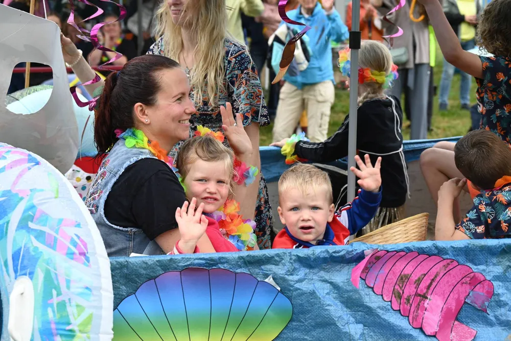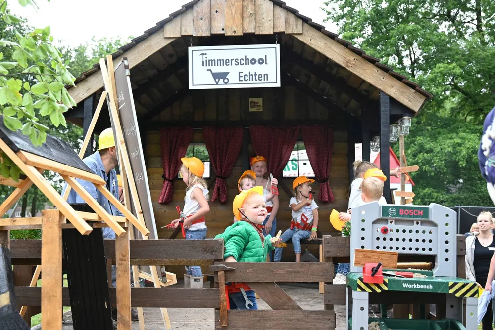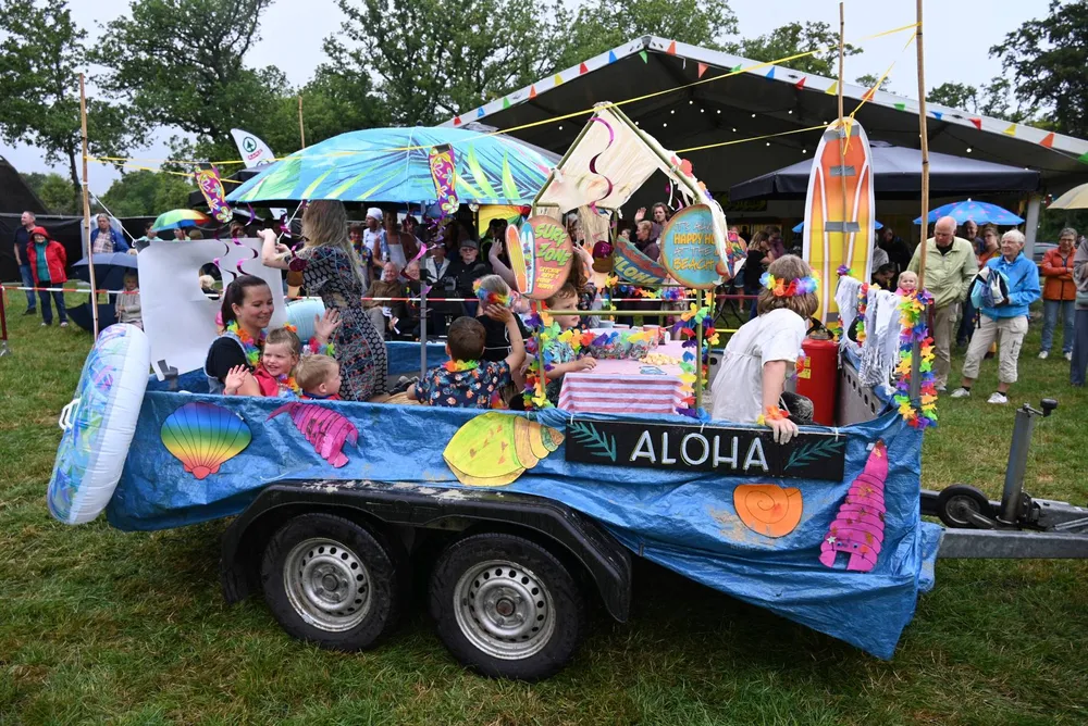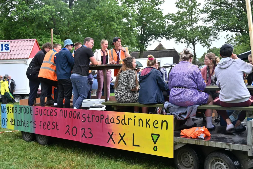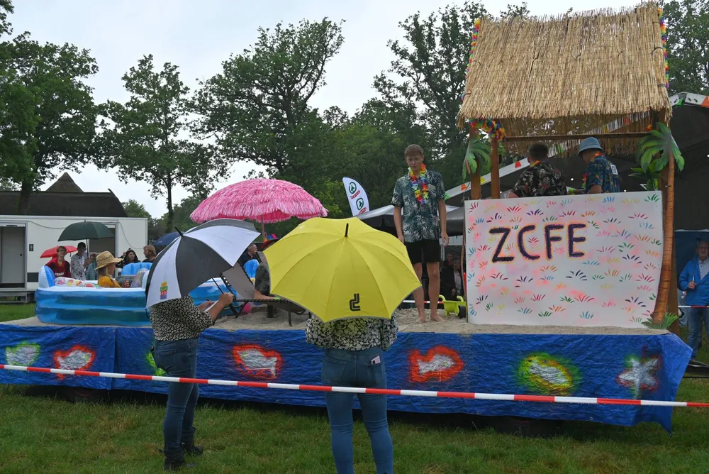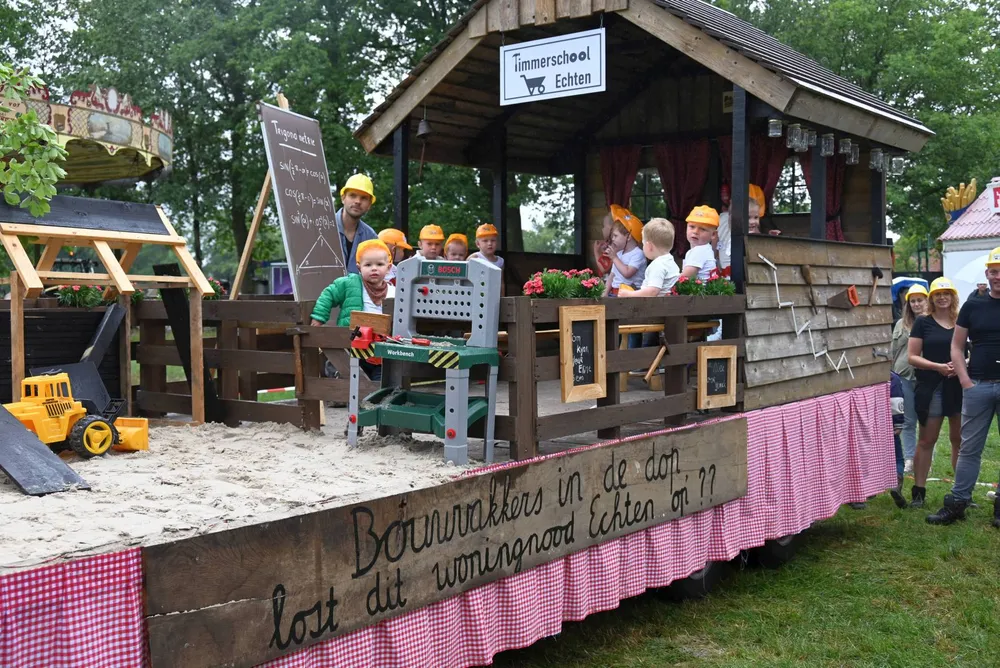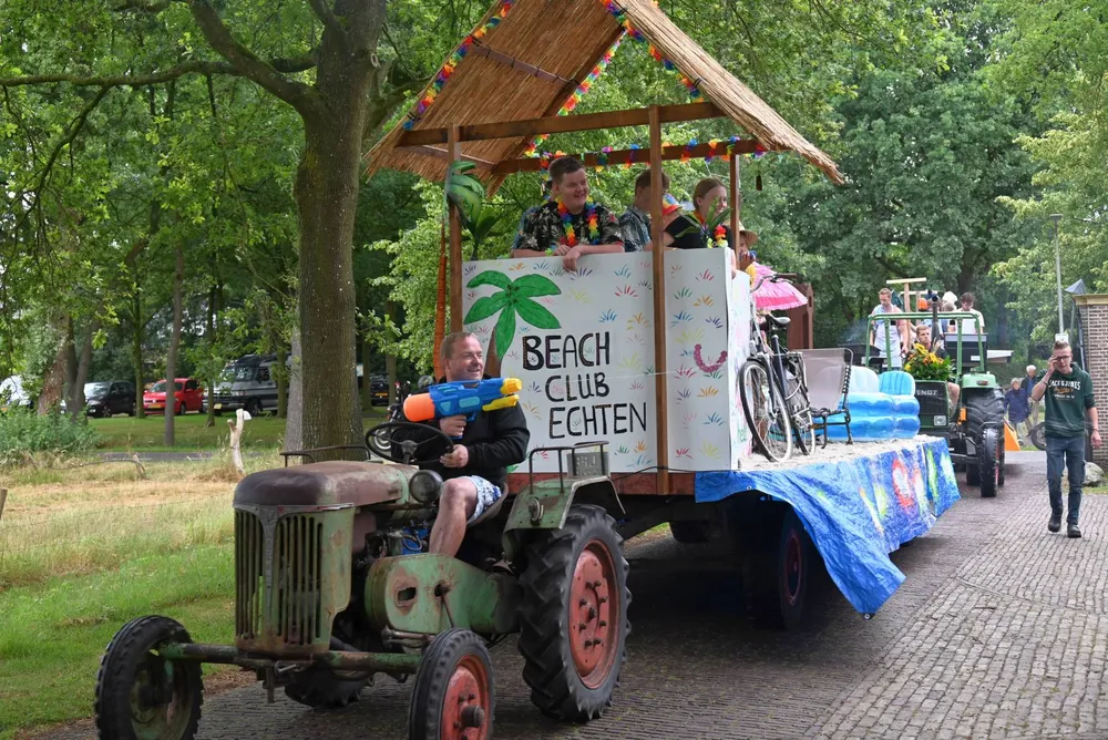 Echten – Fijn dat er zaterdag een zweefmolen op het feestterrein van Echten stond om al die toeschouwers en deelnemers droog te houden. De mensen lieten zich niet afschrikken door ene beetje regen en kregen een fraaie optocht van versierde wagens te zien.