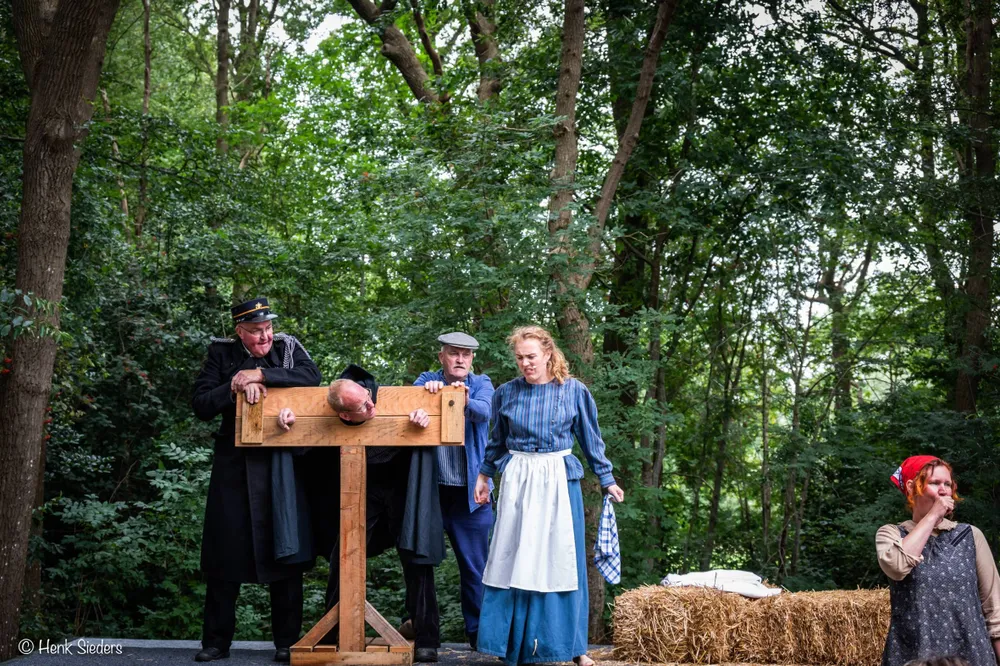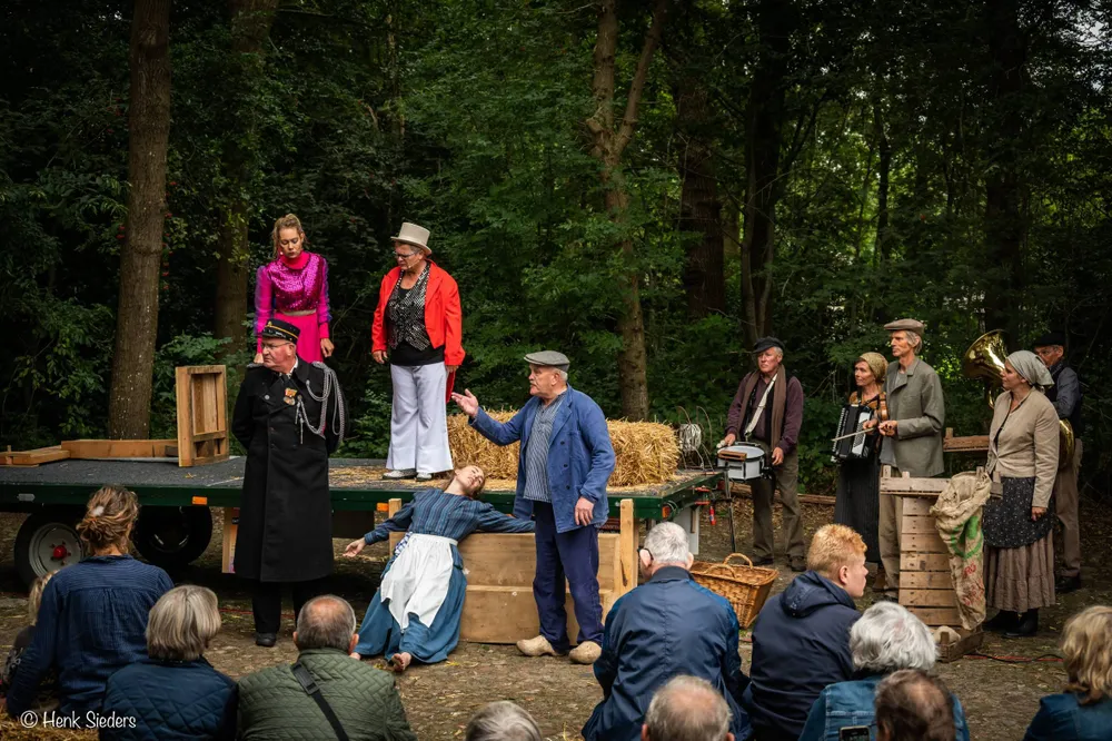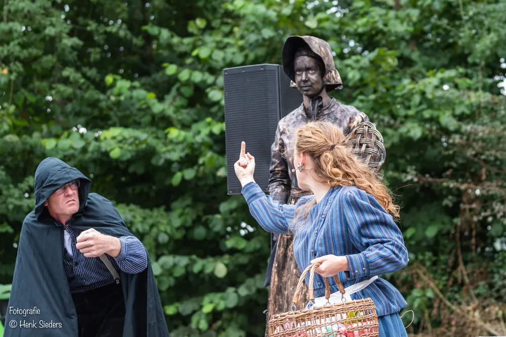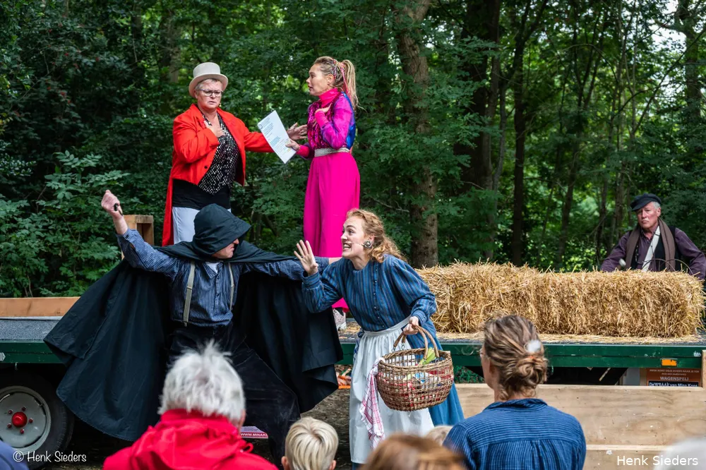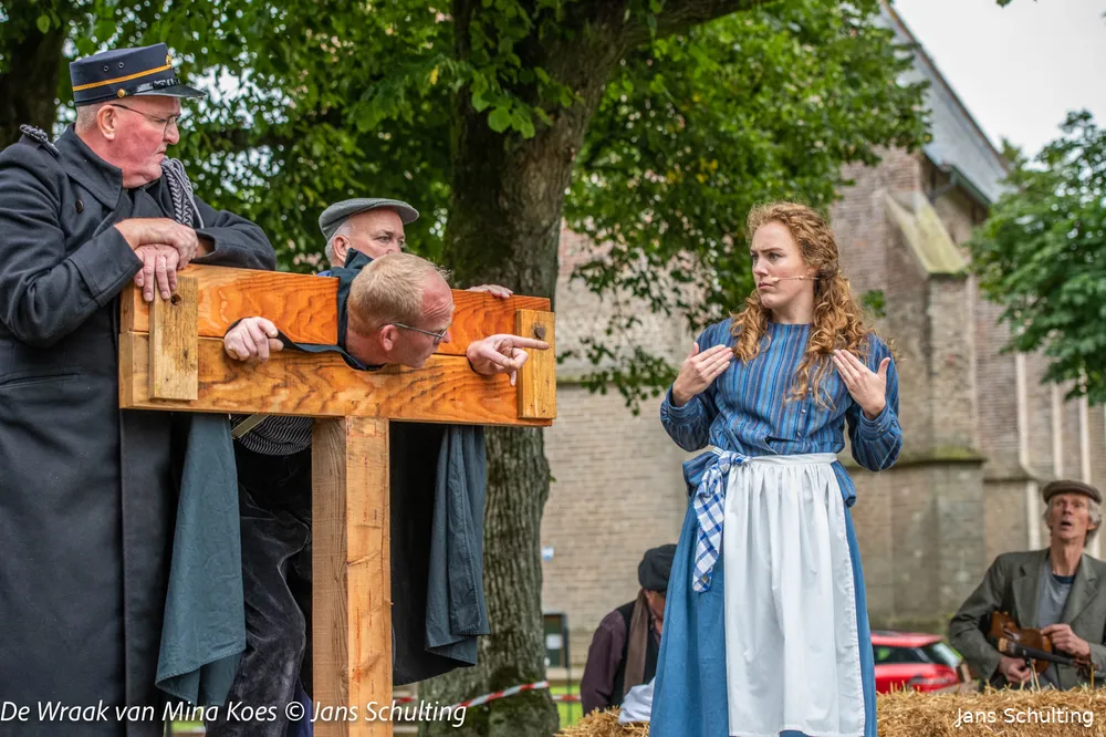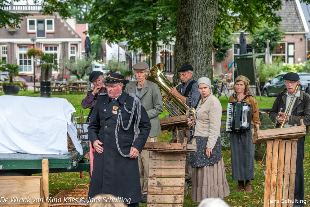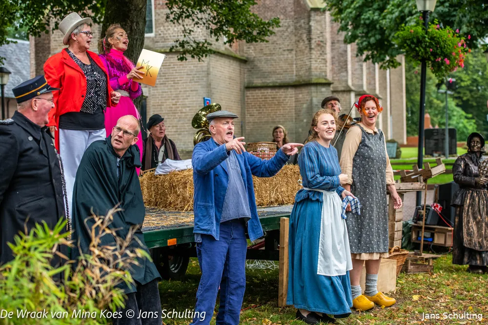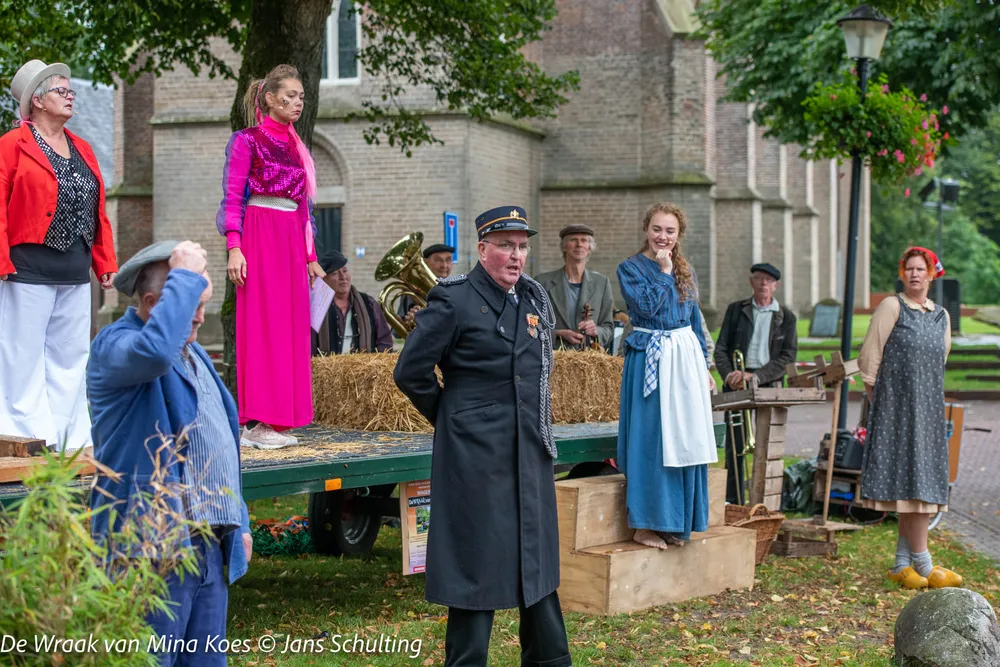 Zuidwolde – Het eerste weekend waarin het wagenspel ‘De wraak van Mina Koes’ werd opgevoerd, trok volle pleinen. Honderden belangstellenden kwamen nieuwsgierig een kijkje nemen om te zien hoe het er voorstaat met Mina Koes.