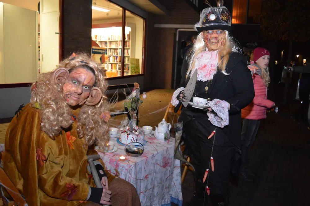 Zuidwolde - Het was vanavond druk in de Hoofdstraat van Zuidwolde. Vooral veel enge gasten in alle soorten en maten. Natuurlijk horrorclowns, mannen met kettingzagen en doodshoofden, maar ook een duistere koets en de nodige zelfgebouwde spookhuizen bij enkele winkels. Daar werden de bezoekers de stuipen op het lijf gejaagd.