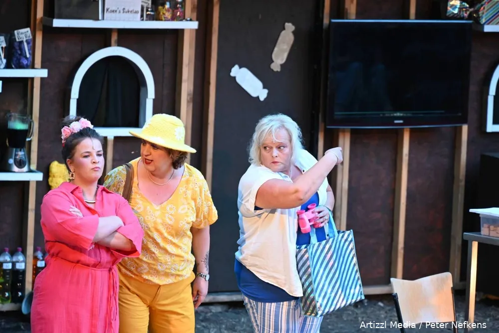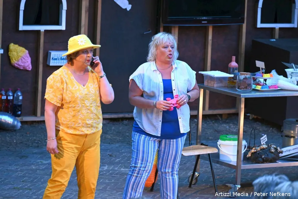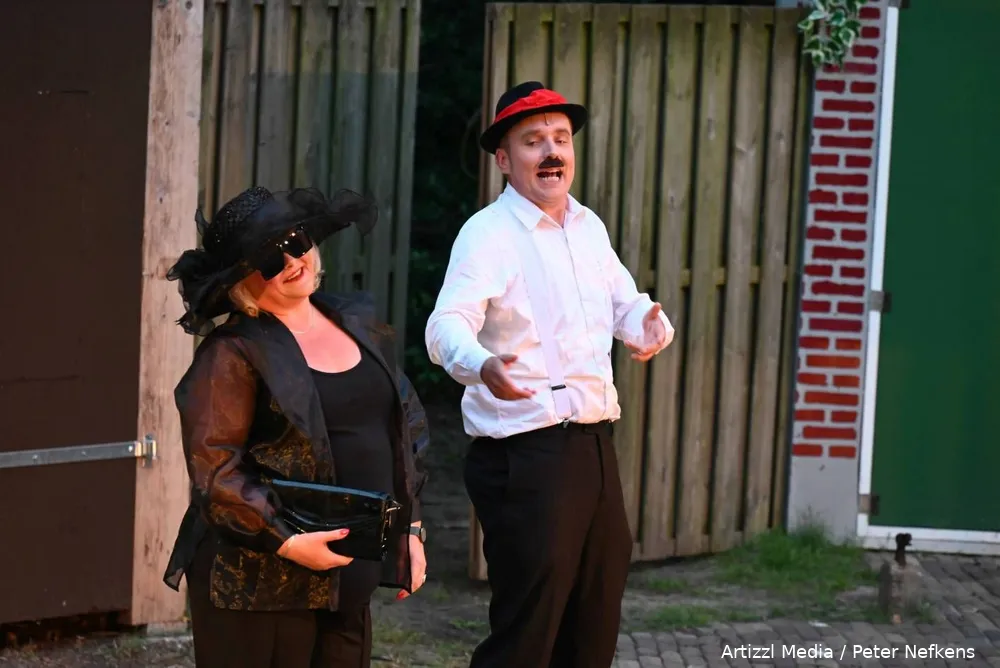 Na het jubileumstuk van een jaar geleden, wat niet door iedereen zo enthousiast werd ontvangen, revancheerde regisseur Elise van der laan zich met dit stuk van Mart Moors. Het werd een zoete avond met de nodige hectiek, tot een moordpoging aan toe. De foto's spreken wat dat betreft voor zich. Er zijn nog voorstellingen op 25, 26 en 30 juli, alsmede 1 en 3 augustus.