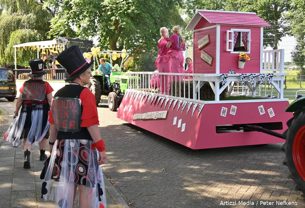 Oosteinde - De optocht van versierde wagens in Oosteinde bewees weer eens waar een klein dorp groot in kan zijn. Het was weer een beste stoet en er deden inwoners van alle leeftijden aan mee. Ze waren bovendien heel creatief geweest, zoals op de foto's wel te zien is.