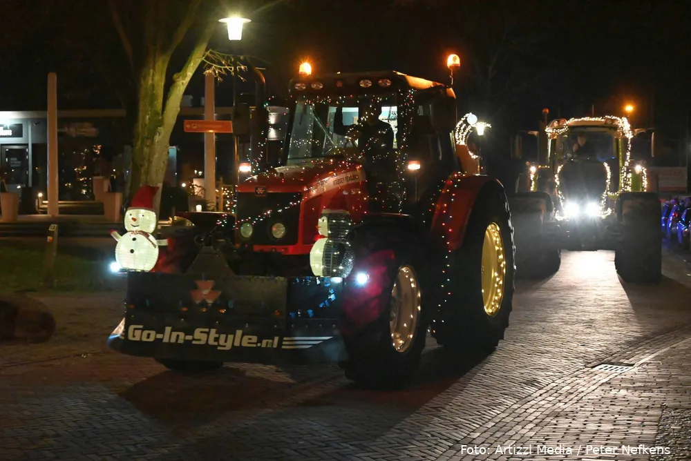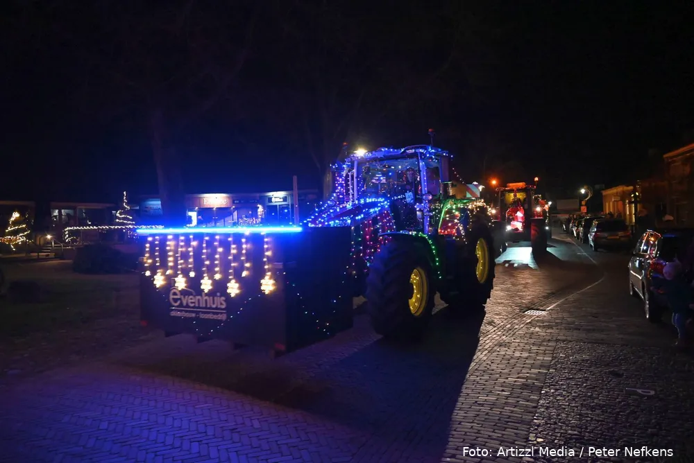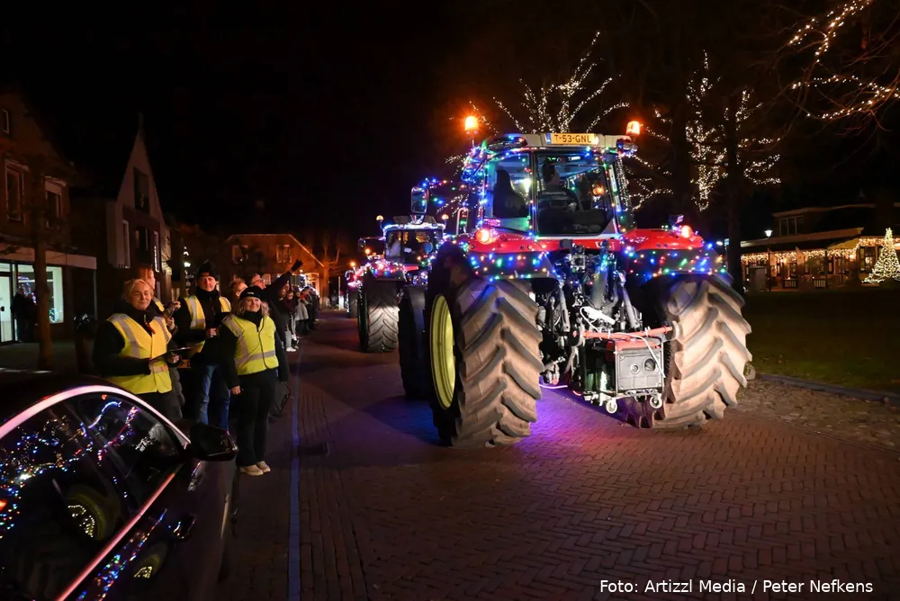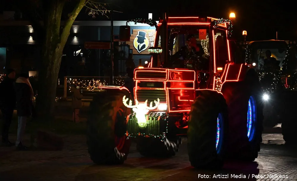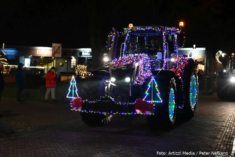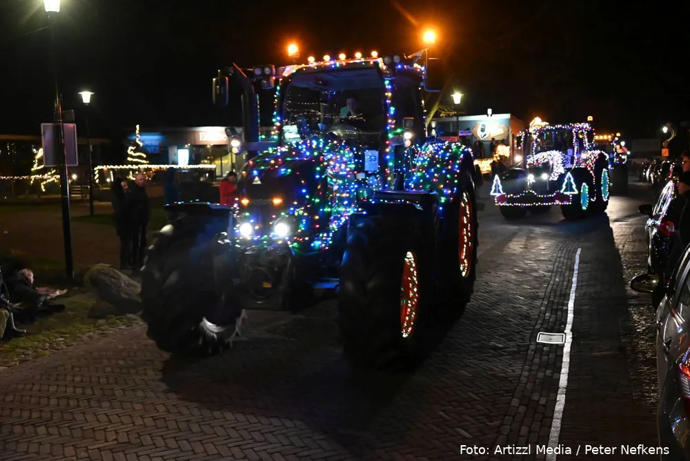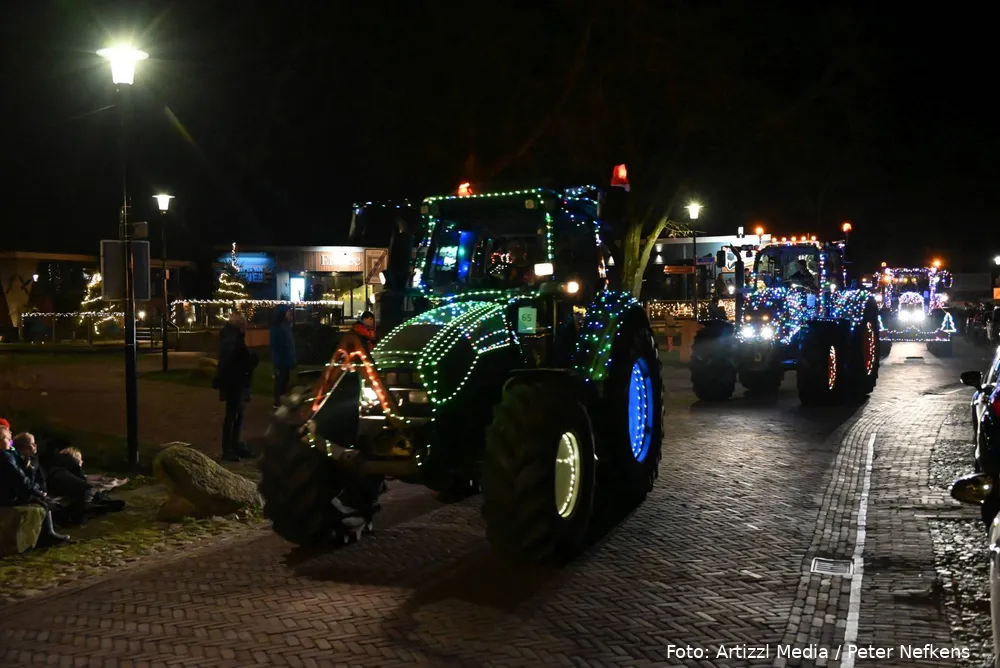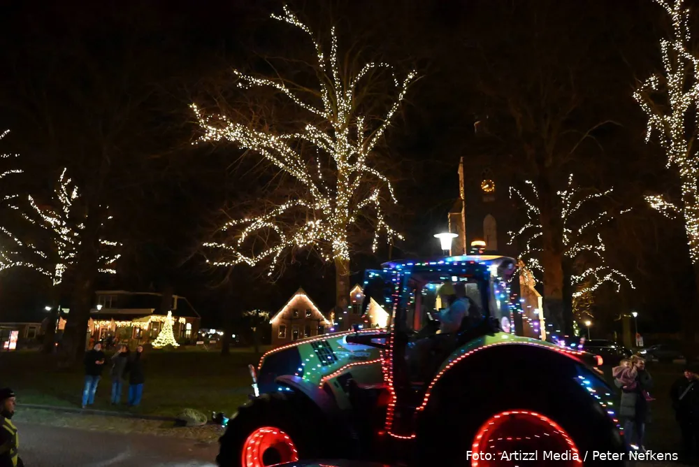 Volle straten tijdens verlichte kersttractortocht De Wolden