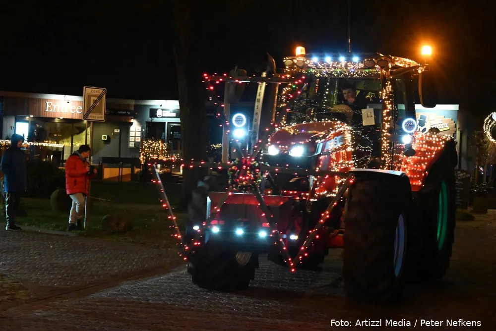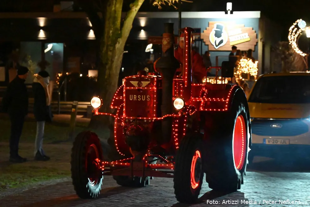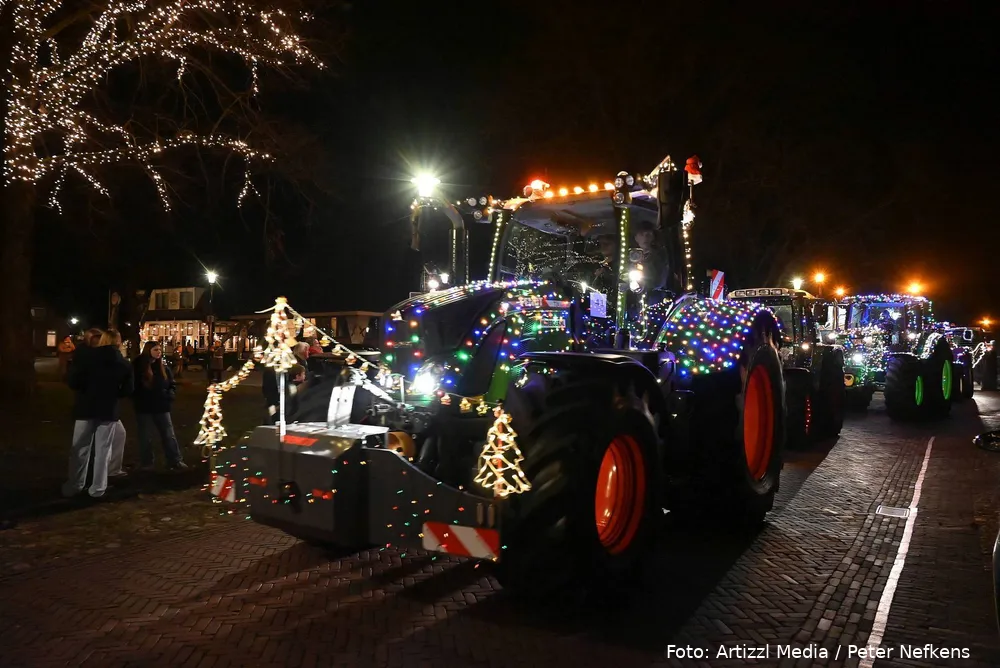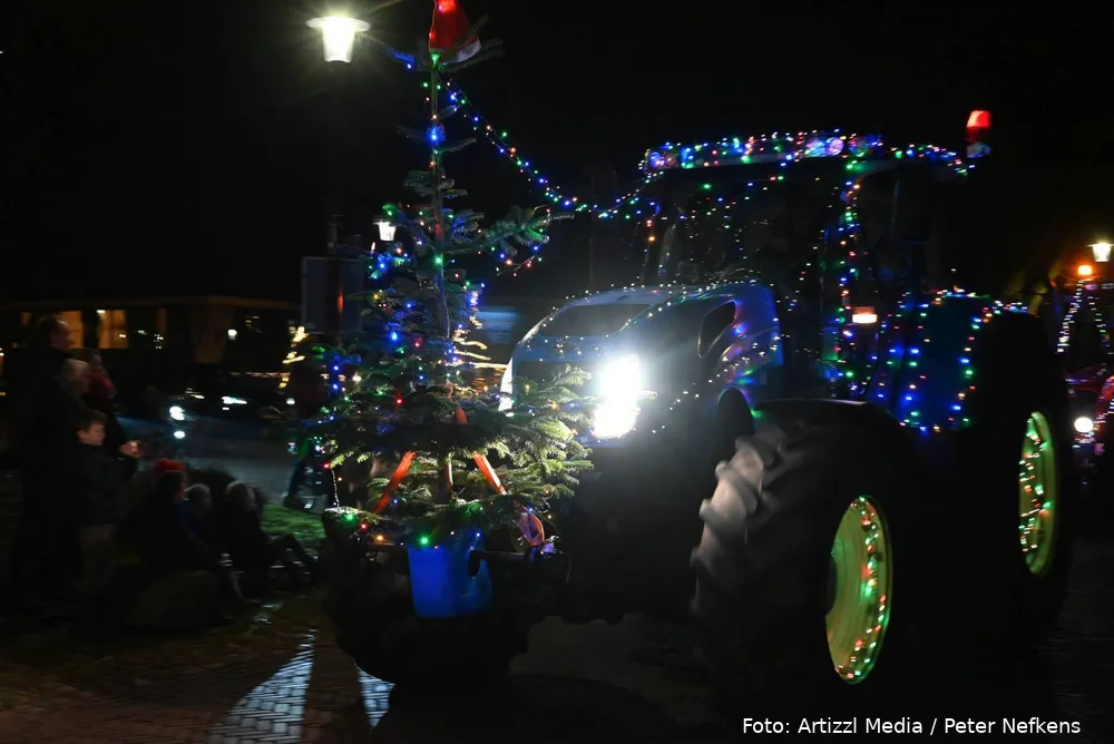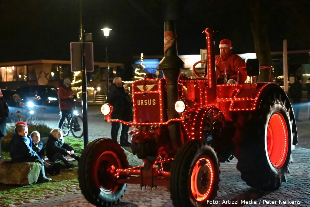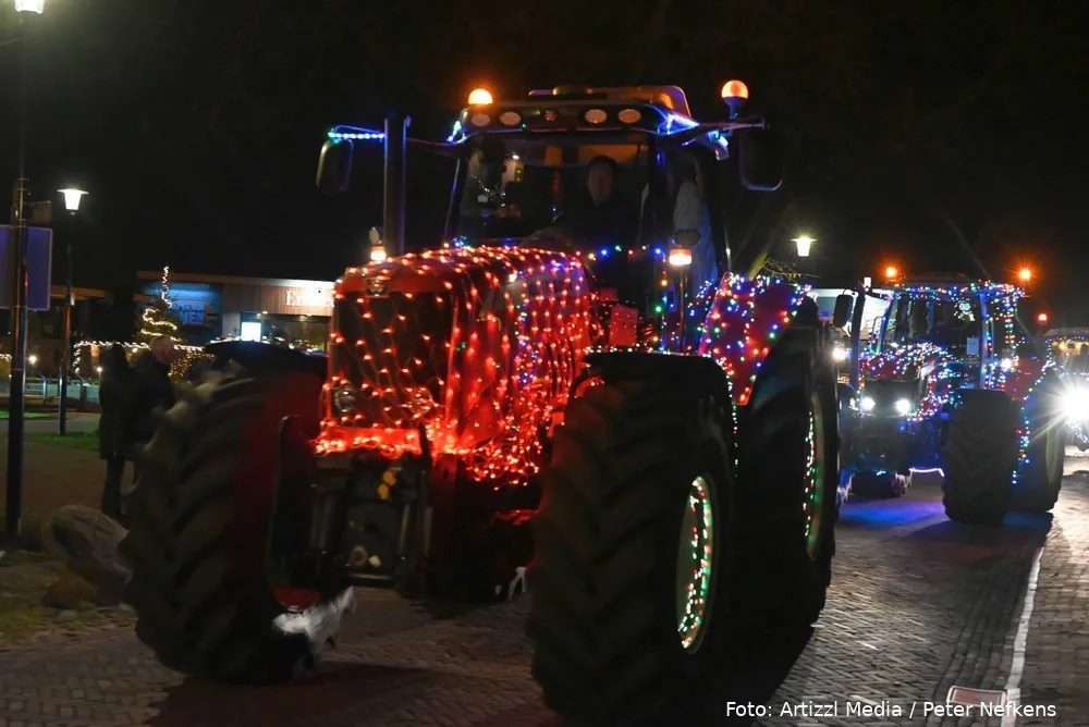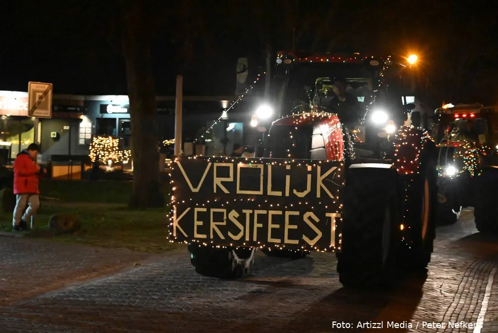 Volle straten tijdens verlichte kersttractortocht De Wolden