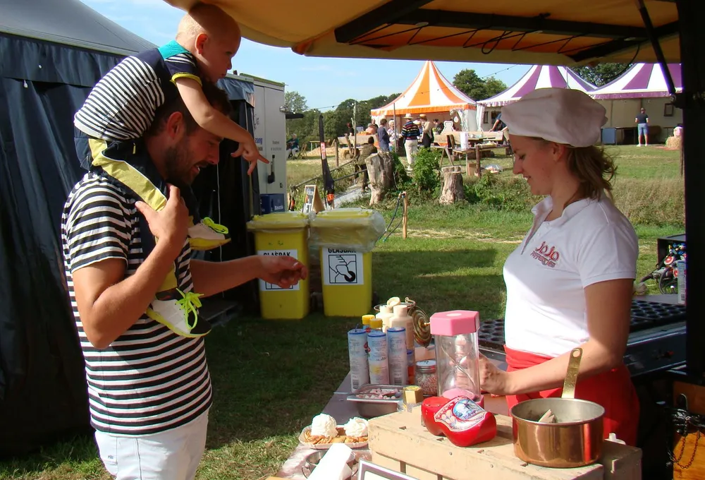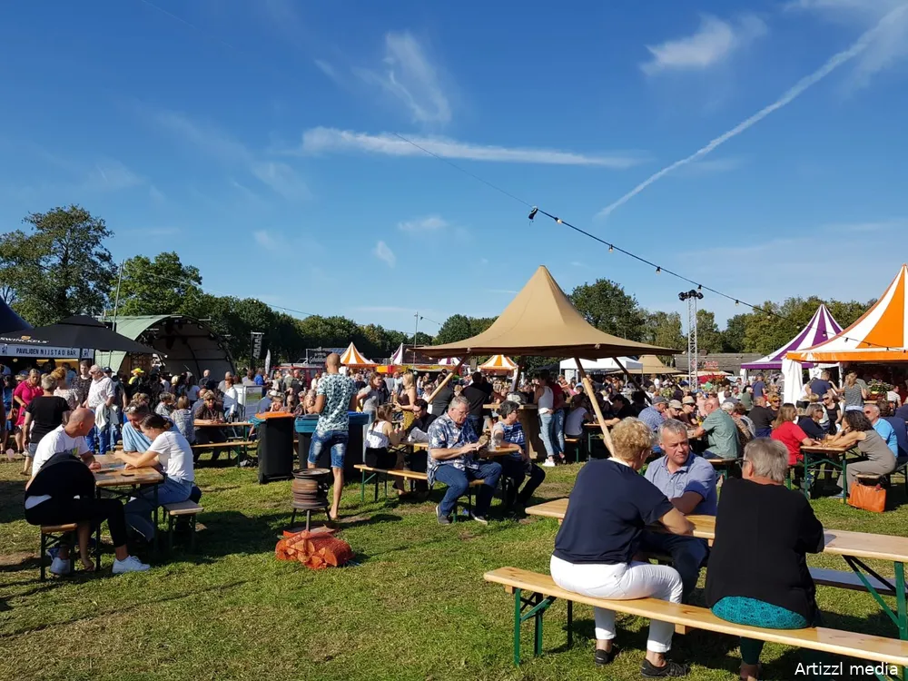 Al ver voor ‘etenstijd’ waren er nauwelijks nog plaatsen vrij. De foodtrucks zagen de rijen alsmaar langer worden en wachttijden van een kwartier waren meer regel dan uitzondering. Het kon de pret niet drukken. Volgens festivalvoorzitter Bert van der Woude was het op de zaterdag nog nooit zo druk geweest.